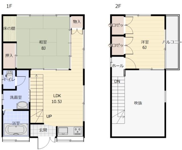 間取内容 LDK 10.5畳 1階 1室 和室 8畳 1階 1室 洋室 6畳 2階 1室